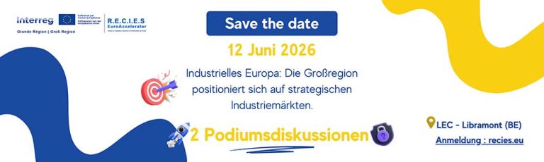 Dank des Interreg-Programms Großregion R.E.C.I.E.S. kann sich Ihr Unternehmen in eine einzigartige Dynamik der grenzüberschreitenden Zusammenarbeit einbringen, die von industriellen, wirtschaftlichen und institutionellen Akteuren getragen wird, die sich für eine wettbewerbsfähigere, nachhaltigere und widerstandsfähigere Industrie einsetzen.